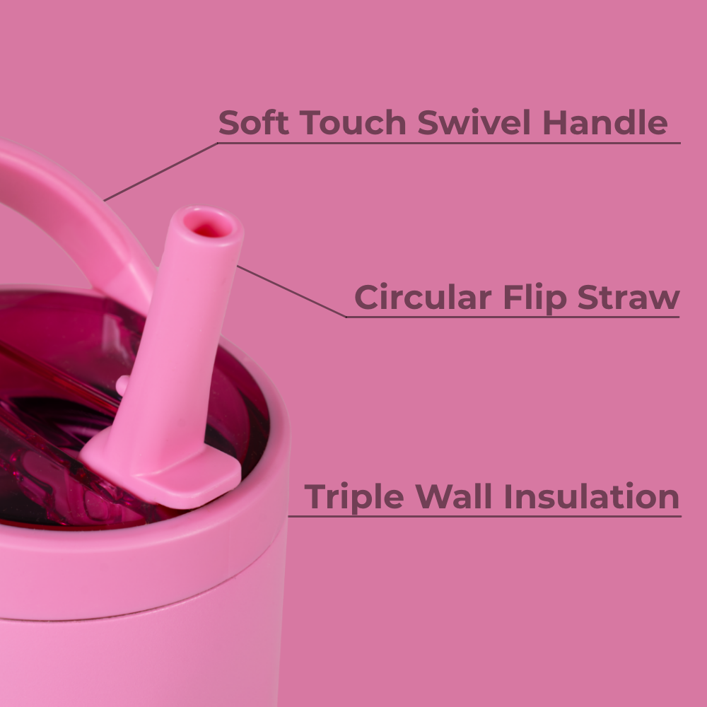 Stay refreshed with the Sport 40oz in Taffy. With its bubblegum-pink finish, this water bottle adds a bold detail while delivering the capacity and durability you need to stay hydrated through workouts, training sessions, or long active days. The 40oz size makes it easy to keep hydration steady without constant refills. Built for movement, the Sport bottle is completely leakproof with the straw down, fits in most cupholders, and features an ergonomic bucket handle for a secure, comfortable grip wherever you go. Constructed from 18/8 stainless steel with triple-wall insulation, it keeps drinks cold for hours. A protective rubber base adds stability and toughness, while the dishwasher-safe design ensures quick and easy cleanup. Practical and dependable, the tumbler is hydration designed to support performance, endurance, and wellness every day. Dimensions: 4.78" x 4.78" x 10.8" Base diameter: 3.14" Capacity: 40 ounces of water ~ 1182 mL Weight: 20oz